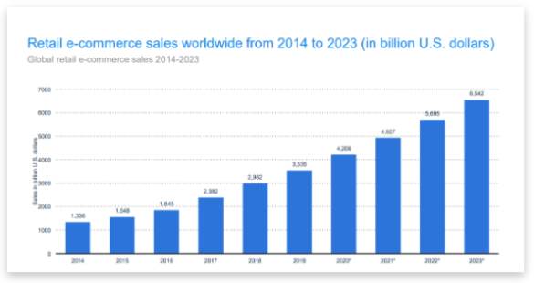 The history of e-commerce starts with the first online sale in August 1994 when a man sold a CD by the band Sting to his friend through his website NetMarket.  A recent study shows that over half of the American population prefers online shopping. Nowadays, Ecommerce has become part of our lives and a $4.2 trillion global e-commerce sale is projected by.